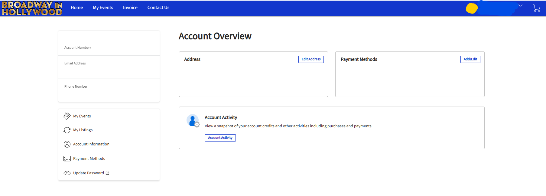 â Tip: You can also access your Broadway in Hollywood Account anytime by going to the top right hand corner of the home page on our website! www.broadwayinhollywood.com